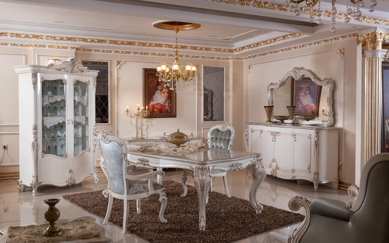 Hk İnci Klasik Beyaz Silver Yemek Odası