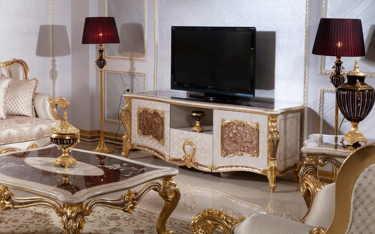 Hk İnci Klasik Kahve Gold Tv Sehpası