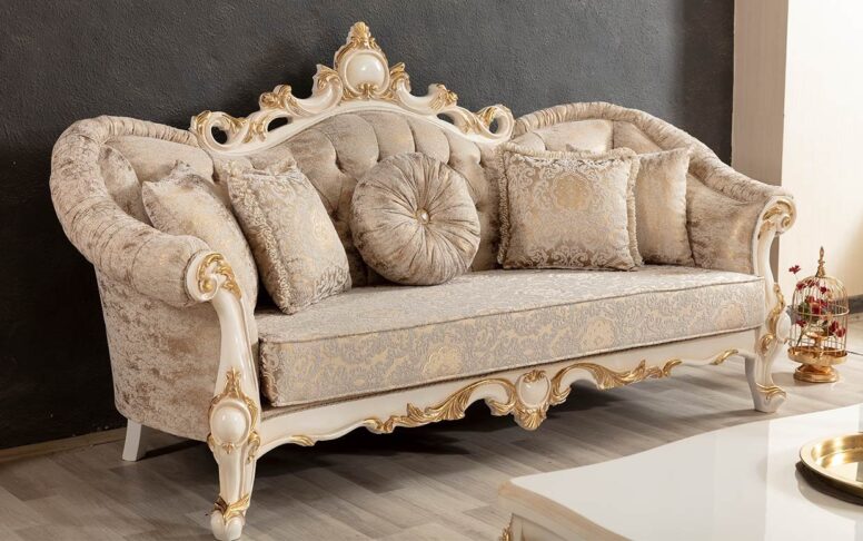 Hk İnci Klasik Beyaz Gold Üçlü Koltuk
