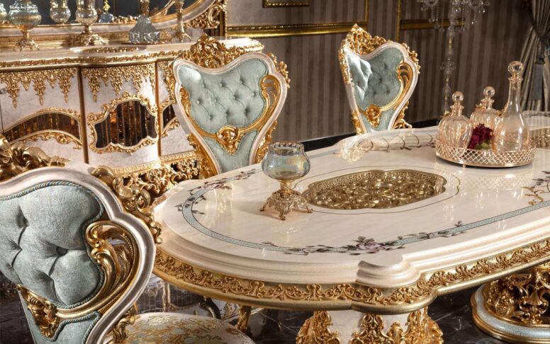 Hk Yakut Beyaz Gold Klasik Yemek Masası