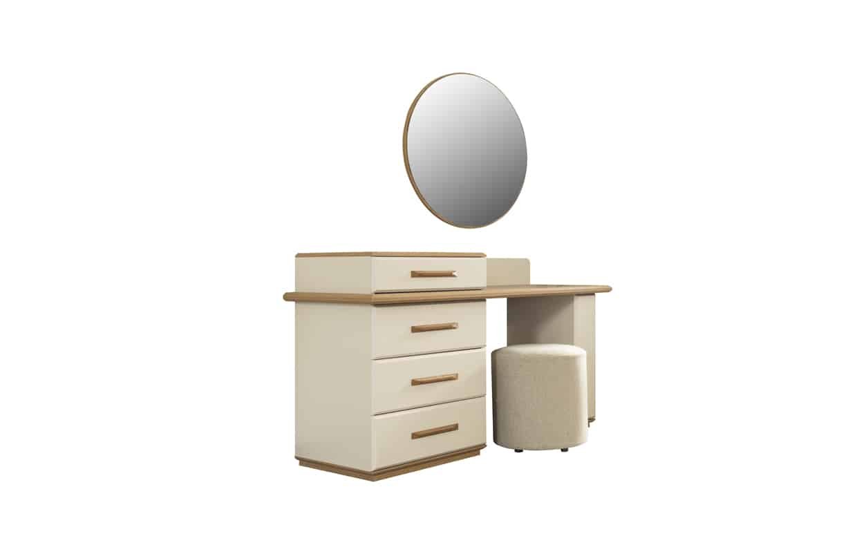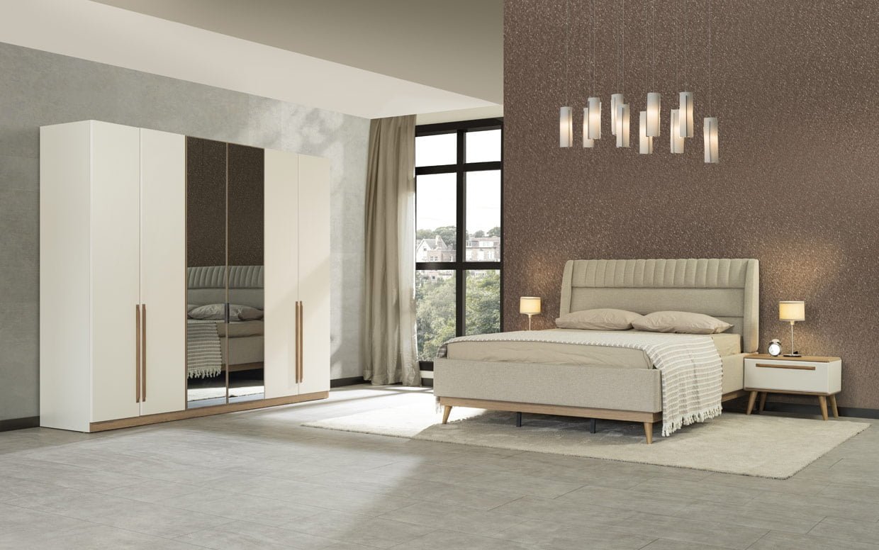 Takım İçeriği Yatak Odası takım içeriğinde 1 adet dolap, 1 adet başlıklı karyola, 2 adet komodin bulunmaktadır.
