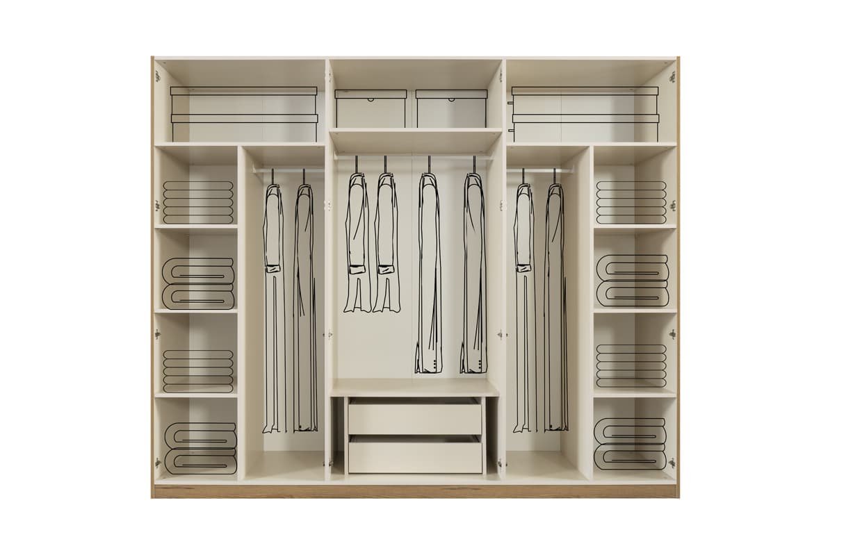 Dolap İçeriği  Askılıklı/Raflı/Çekmeceli.