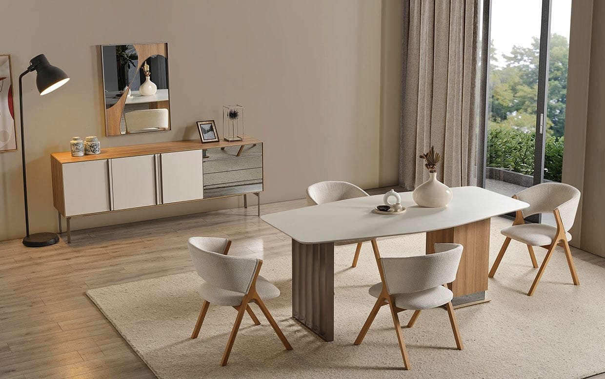 | Takım İçeriği | Yemek odası takım içeriği 1 adet konsol, 1 adet yemek masası ve 4 adet sandalye fiyatlandırmasıdır. |