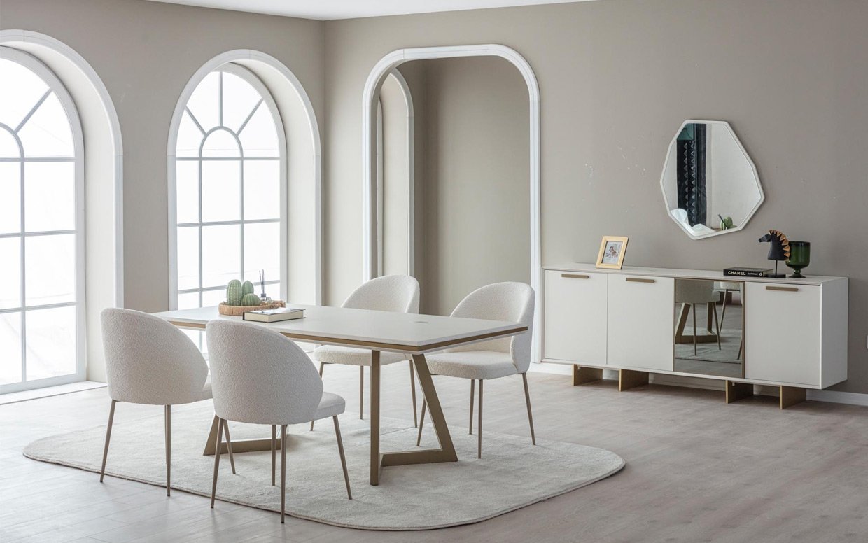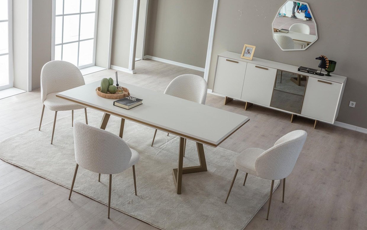 Takım İçeriği Yemek odası takım içeriği 1 adet konsol, 1 adet yemek masası ve 4 adet sandalye fiyatlandırmasıdır.