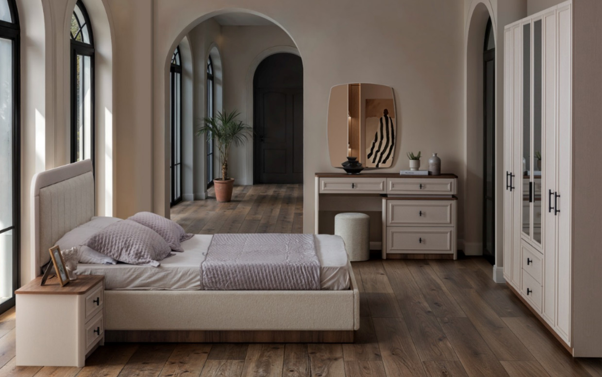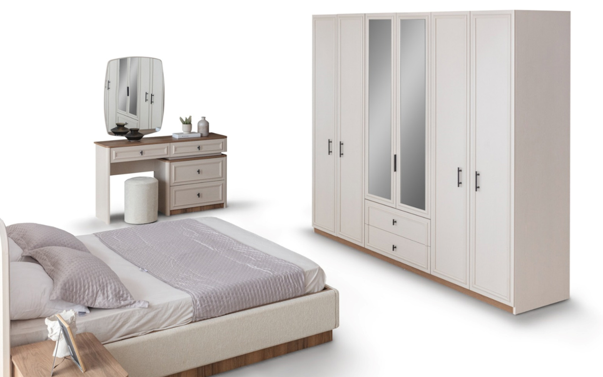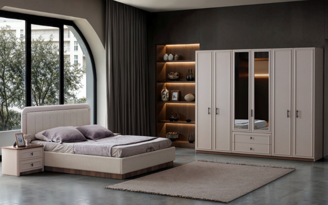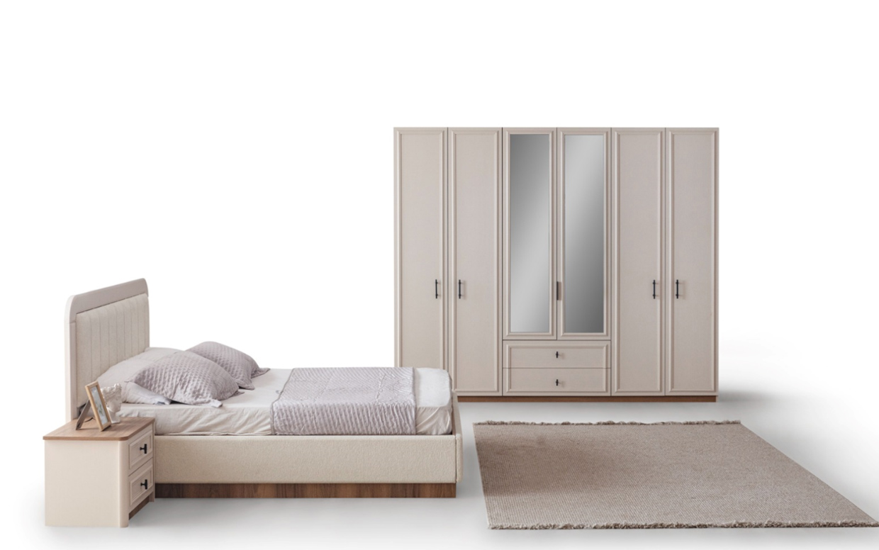 | Takım İçeriği | Yatak Odası takım içeriğinde 1 adet dolap, 1 adet başlıklı karyola, 2 adet komodin bulunmaktadır. |