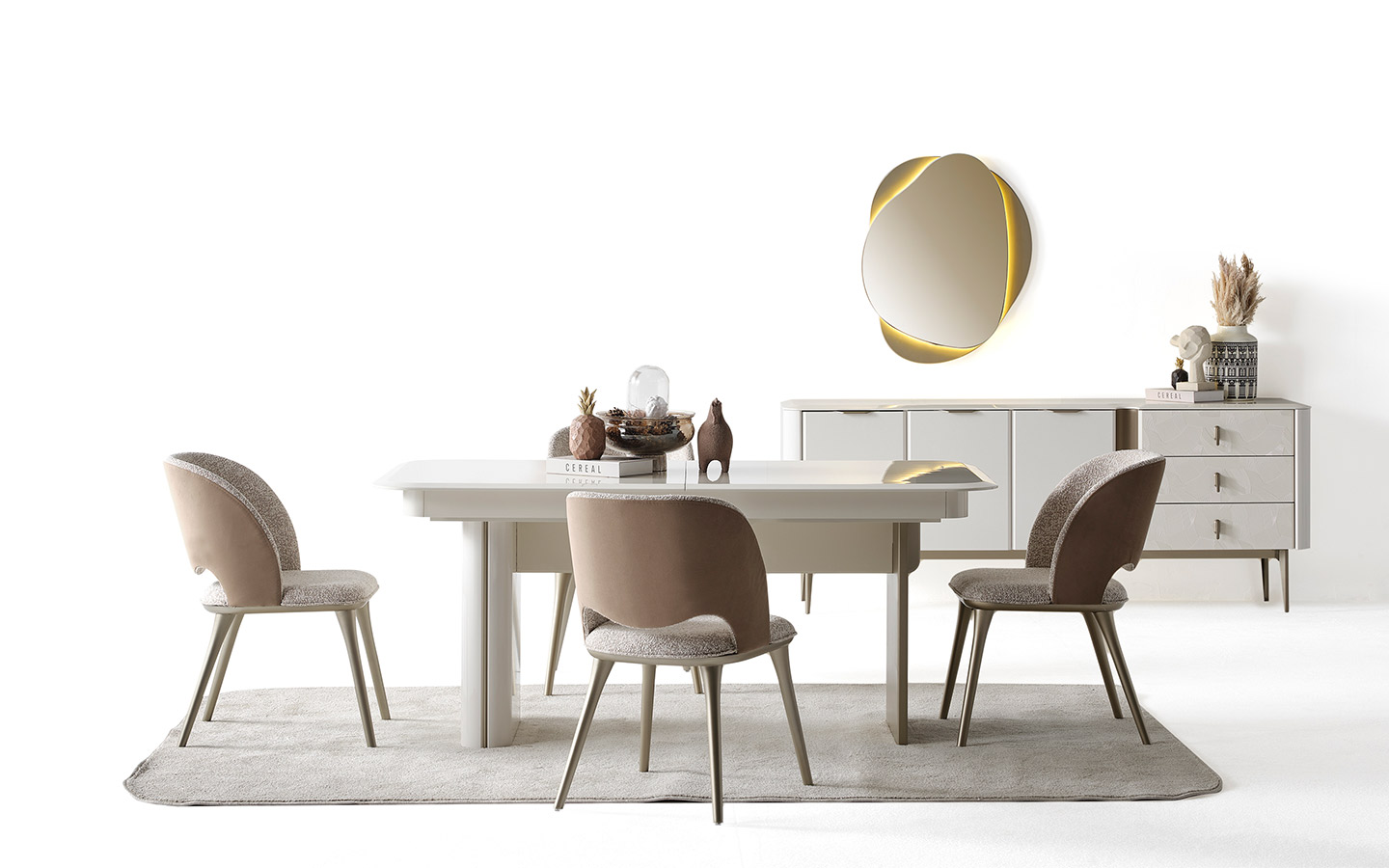 | Takım İçeriği | Yemek odası takım içeriği 1 adet konsol, 1 adet yemek masası ve 4 adet sandalye fiyatlandırmasıdır. |